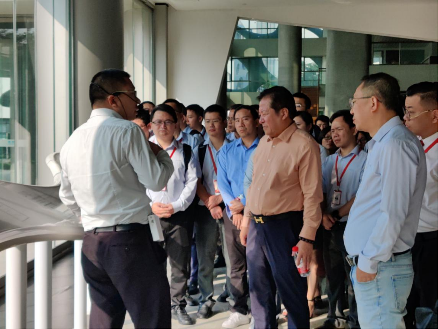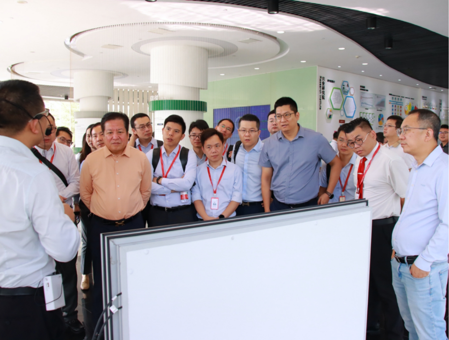 在參觀過(guò)程中,芬尼科技代表團(tuán)在水發(fā)能源集團(tuán)相關(guān)負(fù)責(zé)人的陪同下,參觀了水發(fā)能源集團(tuán)的研發(fā)樓展廳、水發(fā)興業(yè)唯領(lǐng)門窗展廳及水發(fā)興業(yè)新材料展廳。研發(fā)樓展廳展示了水發(fā)能源集團(tuán)在科技創(chuàng)新方面的投入和研發(fā)成果,特別是在節(jié)能減排、新能源等領(lǐng)域的技術(shù)積累和產(chǎn)品應(yīng)用。