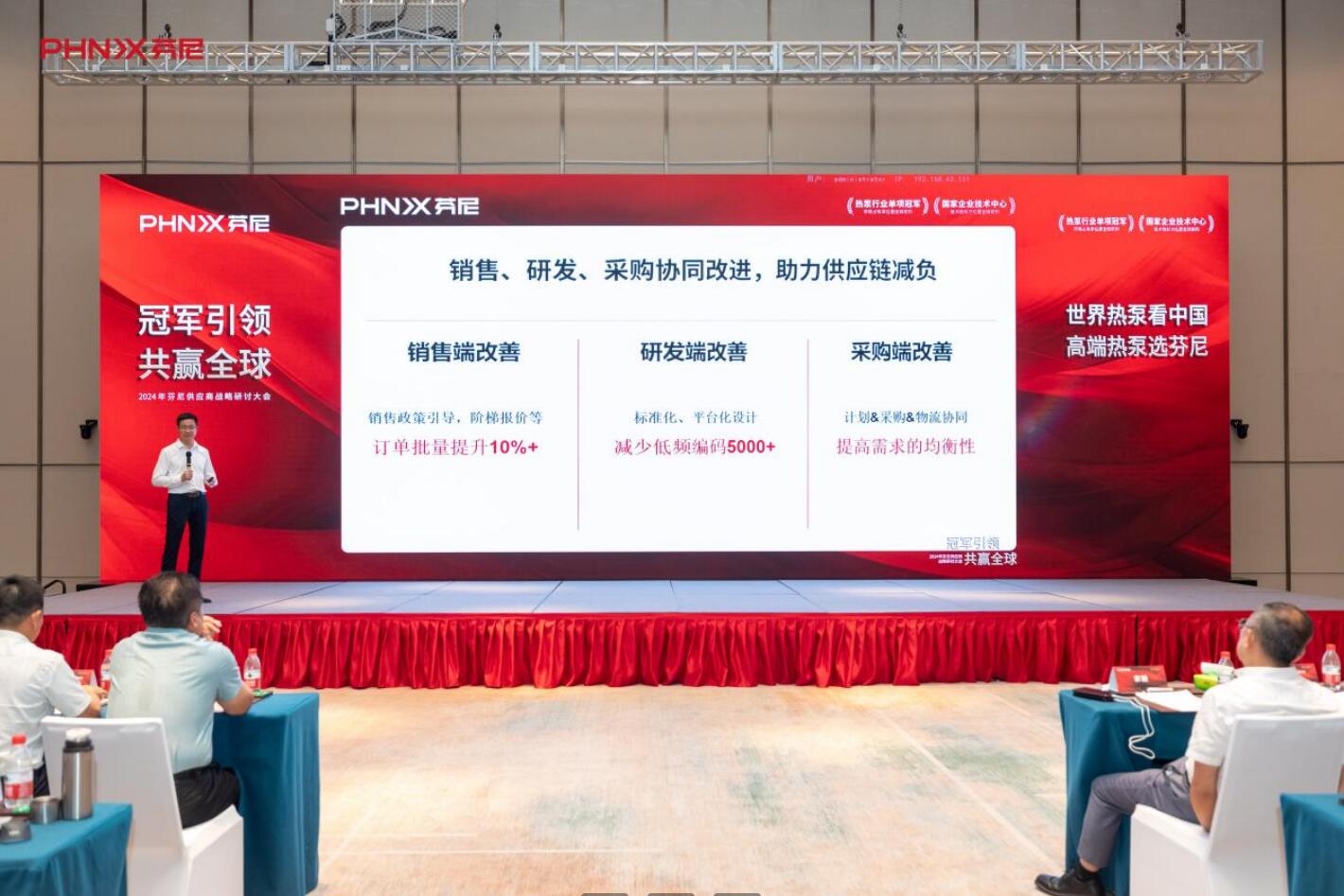 大會以“冠軍引領(lǐng)”為核心,全面彰顯出了芬尼作為熱泵行業(yè)單項冠軍的硬核實力。芬尼各部門高管進行主題演講,分享了他們在供銷協(xié)同、質(zhì)量管控、技術(shù)創(chuàng)新等方面的寶貴經(jīng)驗。不僅為參會者提供了寶貴的行業(yè)洞察,也激發(fā)了大家對未來發(fā)展的信心和動力。